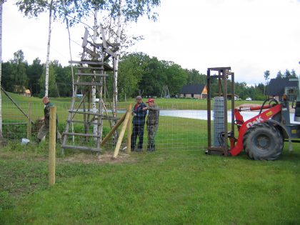 Kopš 2009. gada mēs veicam kvalitatīvu žogu uzstādīšanu briežu dārziem un dažādu citu teritoriju norobežošanai. Esam nodrošināti ar visu nepieciešamo tehnisko aprīkojumu, lai veiktu pareizu mietu iedzīšanu zemē, žoga nospriegošanu un atsaišu uzstādīšanu.